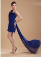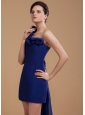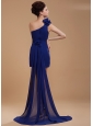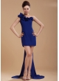 Royal Blue One Shoulder Prom / Cocktail Dress With Hand Made Flower Watteau Train