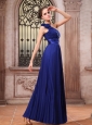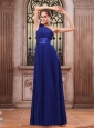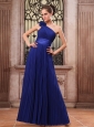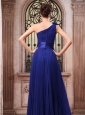 Royal Blue Prom Dress One Shoulder Hand Made Flower Pleat Chiffon