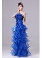 Royal Blue Prom Dress With Hand Made Flowers Ruffled Layers and Ruch