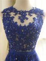 Royal Blue Sleeveless Floor Length Appliques Zipper Prom Dresses