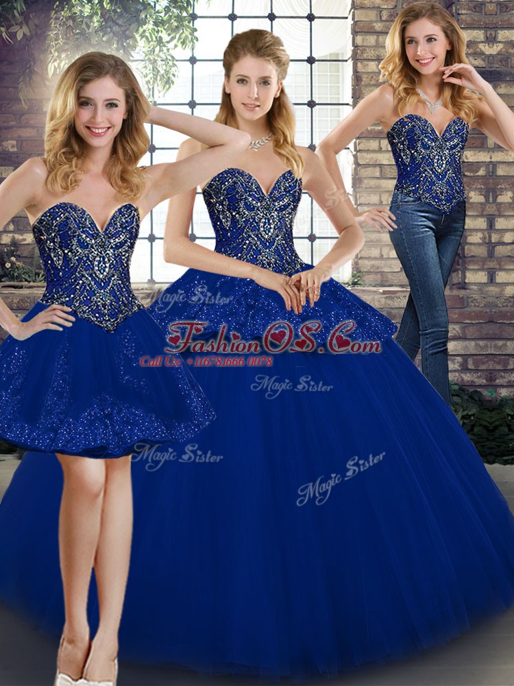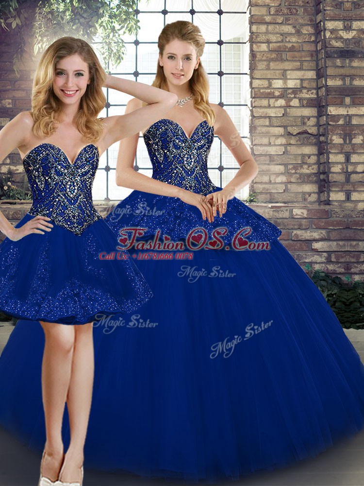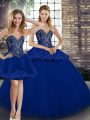 Royal Blue Sleeveless Floor Length Beading and Appliques Lace Up Sweet 16 Quinceanera Dress