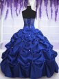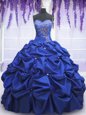 Home >  Quinceanera Dresses >  Cute Quinceanera Dresses > Royal Blue Sleeveless Floor Length Beading and Pick Ups Lace Up Quinceanera Dress
