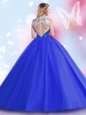 Royal Blue Sleeveless Floor Length Beading and Sequins Zipper Ball Gown Prom Dress