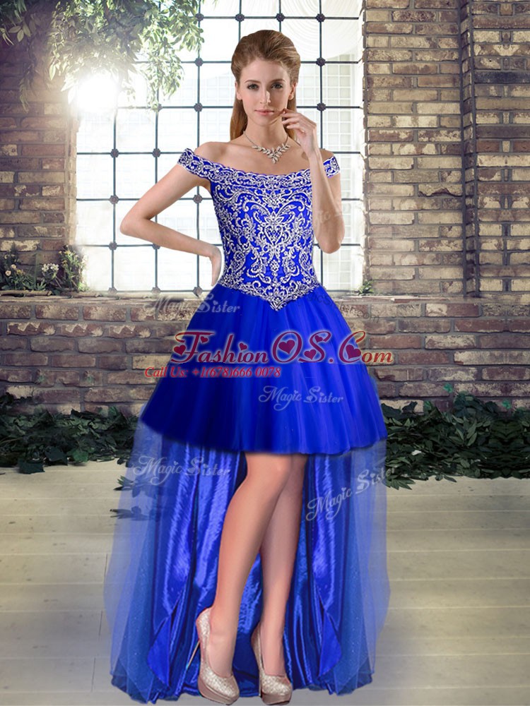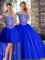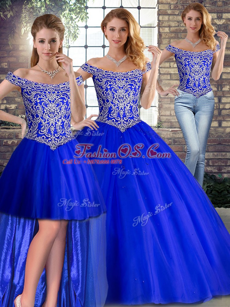 Home >  Quinceanera Dresses >  Detachable Quinceanera Skirts > Royal Blue Sleeveless Tulle Brush Train Lace Up Quinceanera Dresses for Military Ball and Sweet 16 and Quinceanera
