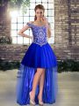 Royal Blue Sleeveless Tulle Brush Train Lace Up Quinceanera Dresses for Military Ball and Sweet 16 and Quinceanera