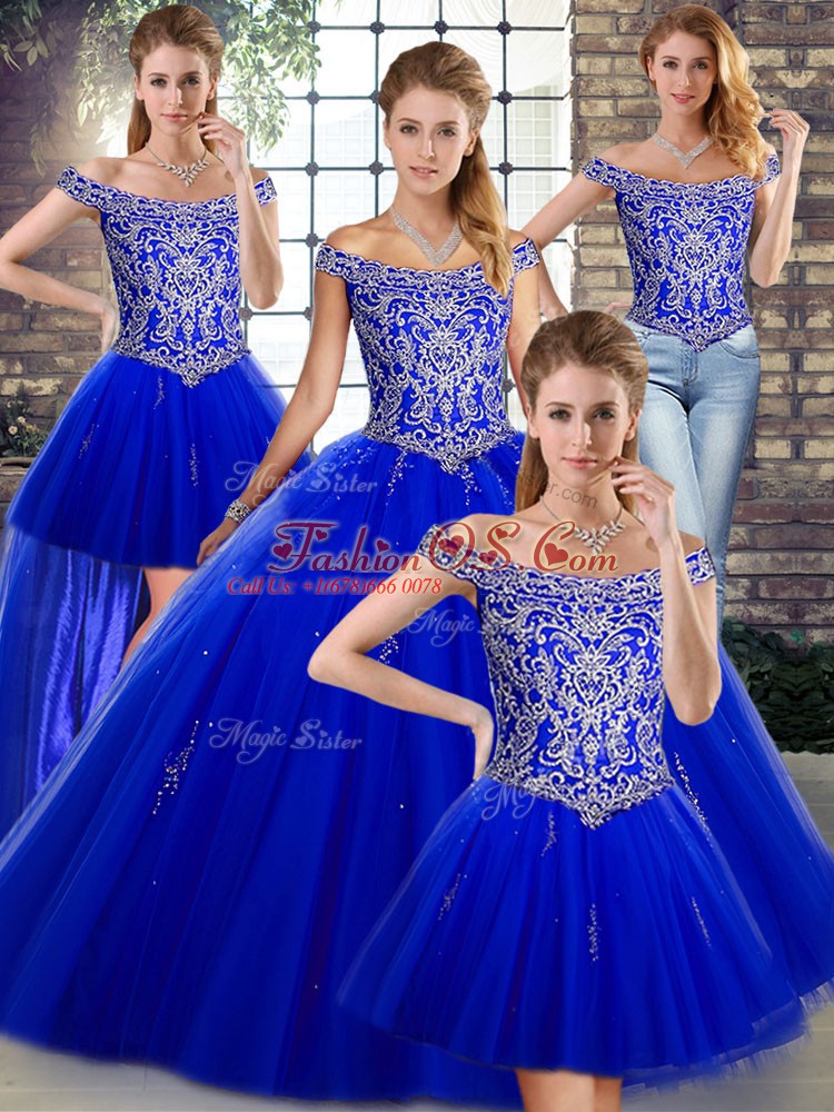 Home >  Quinceanera Dresses >  Detachable Quinceanera Skirts > Royal Blue Sleeveless Tulle Lace Up 15 Quinceanera Dress for Military Ball and Sweet 16 and Quinceanera