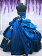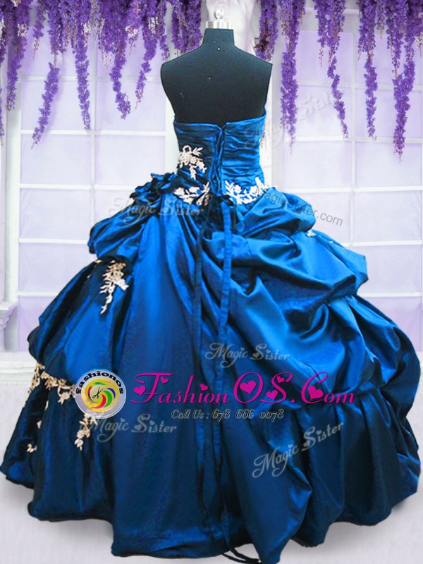 Royal Blue Strapless Neckline Appliques and Pick Ups 15th Birthday Dress Sleeveless Lace Up