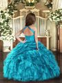 Royal Blue Straps Neckline Ruffles Little Girls Pageant Dress Sleeveless Lace Up