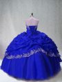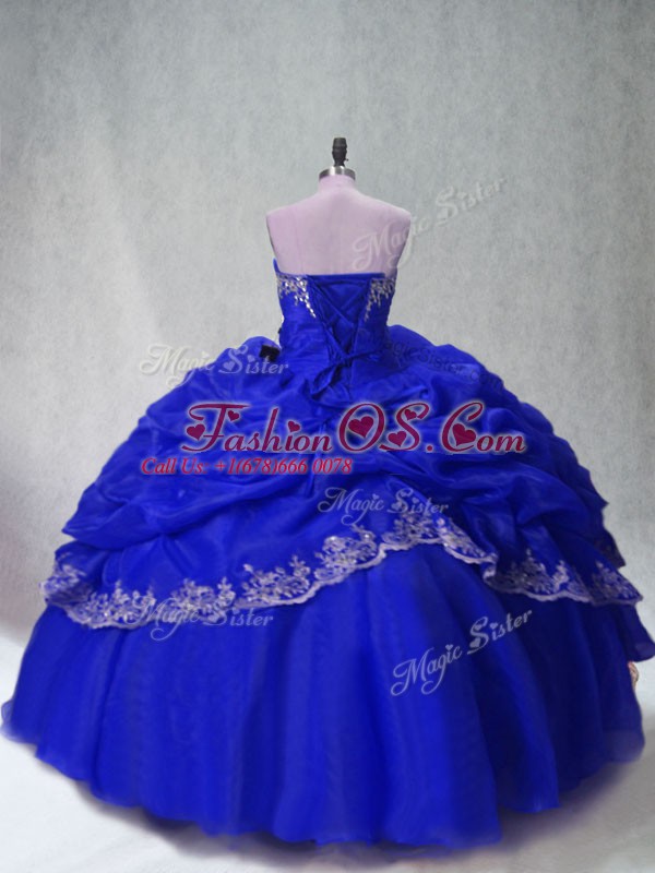 Royal Blue Sweetheart Lace Up Beading and Appliques and Pick Ups Sweet 16 Dresses Sleeveless
