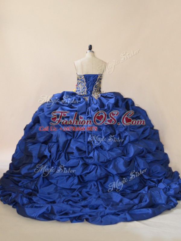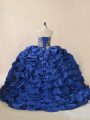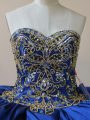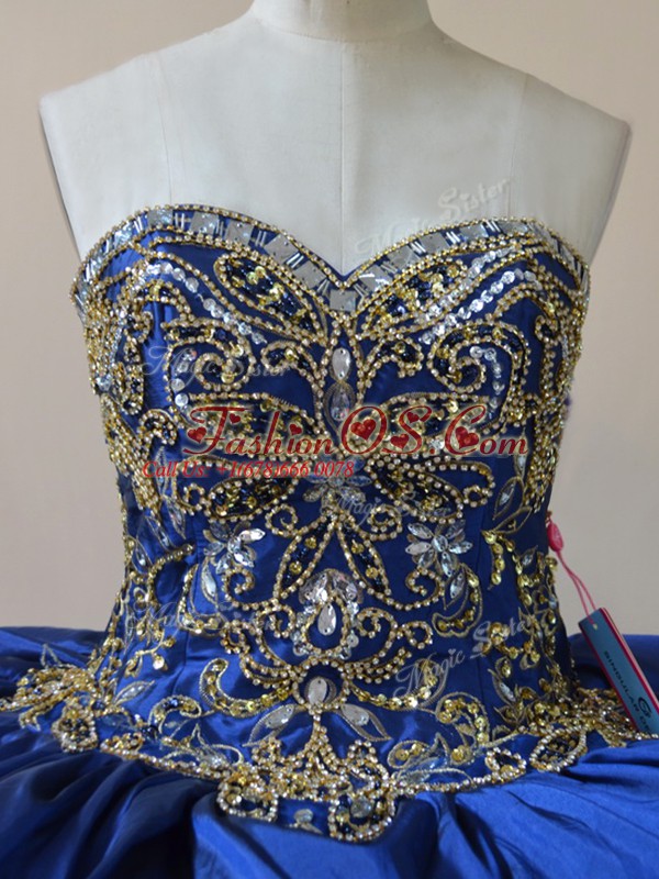 Royal Blue Taffeta and Tulle Lace Up Quince Ball Gowns Sleeveless Brush Train Beading