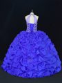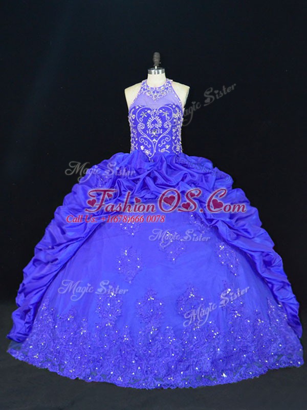 Home >  Quinceanera Dresses >  Fast Delivery Quinceanera Dresses > Royal Blue Taffeta Lace Up Halter Top Sleeveless Floor Length Sweet 16 Quinceanera Dress Beading and Appliques and Embroidery and Pick Ups