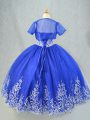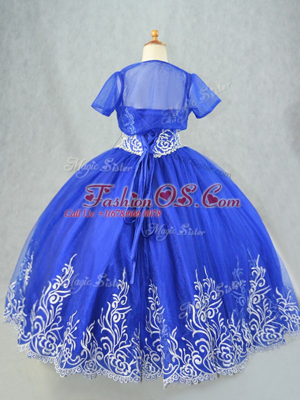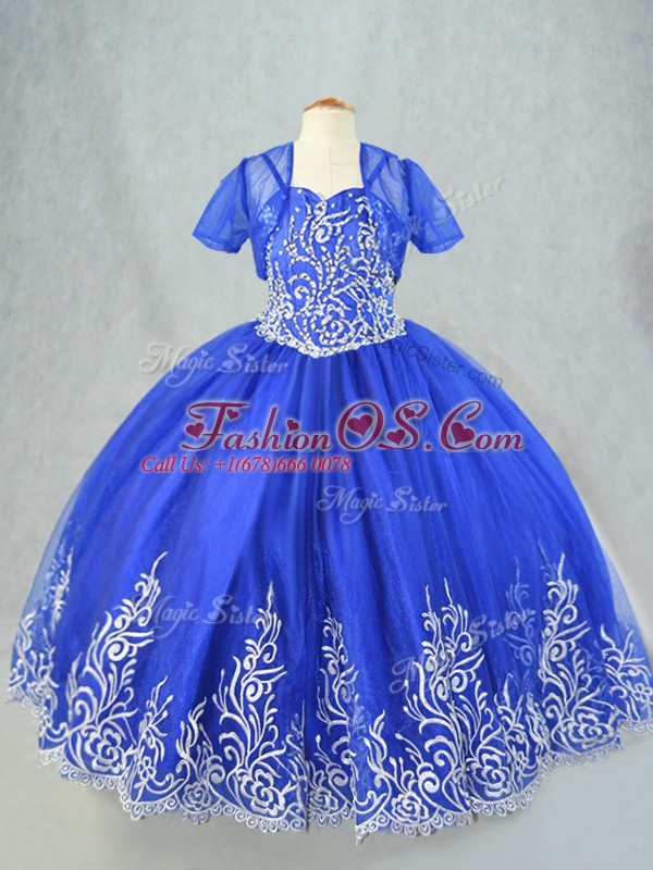Home >  Special Occasion Dresses >  Beautiful Kids Pageant Dresses > Royal Blue Tulle Lace Up Spaghetti Straps Sleeveless Floor Length Pageant Gowns Beading and Embroidery