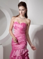 This utterly chic strapless dress is sure to get you noticed! The bangage-style bodice is created from sweetheart neckline and all-over pleats. Your slim figure is presented by this mermaid pink prom dress perfectly. The mermaid style is completed by layers of ruffles which flare out just above the knee in a beautiful shape. This eye-catching elegant prom dress is perfect for any parties.