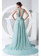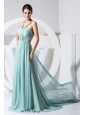 Home >  Prom Dresses >  Best Prom Dresses > Ruch Decorate Bodice Straps Watteau Train Chiffon Light Blue 2013 Prom Dress