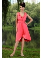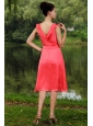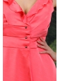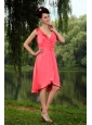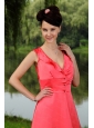 Home >  Special Occasion Dresses >  Dama Dresses for Quinceanera > Ruch V-neck Coral Red Empire Dama Dress for 2013