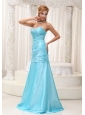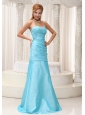 All eyes on you in this beautiful strapless dress that will make your day extra special. It truly is an example of high end couture fashion. This slim fit dress features a sweetheart neckline which is decorated by intricate beading together with delicate ruched bodice to show your wonderful curves. This a-line aqua blue prom dress is pretty and unique You will be stunning in the dance floor.