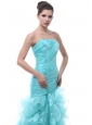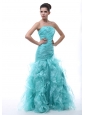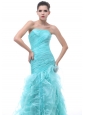 Home >  Prom Dresses >  Beautiful Prom Dresses > Ruched and Ruffles Decorate Bodice Mermaid Floor-length Light Blue Organza 2013 Prom / Evening Dress