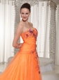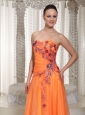 Ruched Bodice 2013 Orange Sweetheart Prom Dress With Appliques