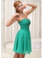 One can find no words that is suitable enough to describe the feeling when seeing this dress. The dress is so sassy and stunning that you will surely be eye-catching at your party. This gown features a keyhole sweetheart neckline that is encrusted with crystals on the front. The ruched bodice short dress is green. The hidden zipper in the back of the dress secures it in place and makes for easy off and on. Don't hesitate to take it home!