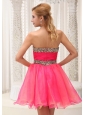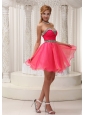 Ruched Bodice and Leopard Coral Red Lovely Prom / Cocktail Dress With Mini-length