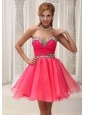 Home >  Special Occasion Dresses >  Cocktail Dresses > Ruched Bodice and Leopard Coral Red Lovely Prom / Cocktail Dress With Mini-length
