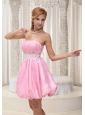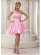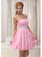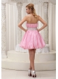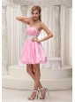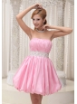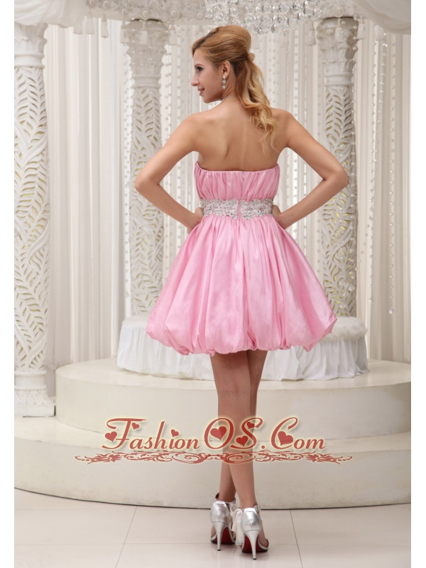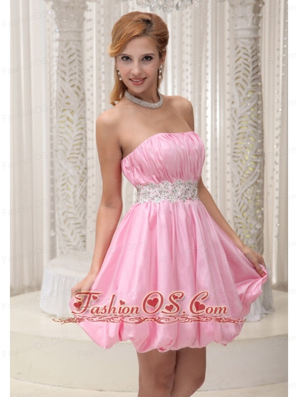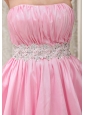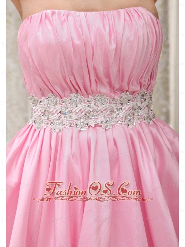 Ruched Bodice Sash With Beading Lovely Homecoming / Cocktail Dress For Formal Evening Pink Taffeta and Mini-length