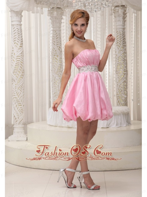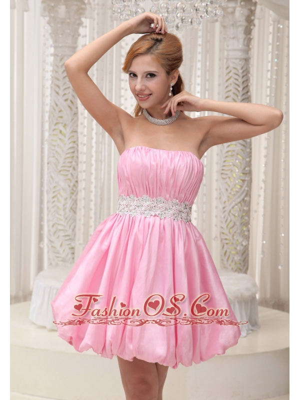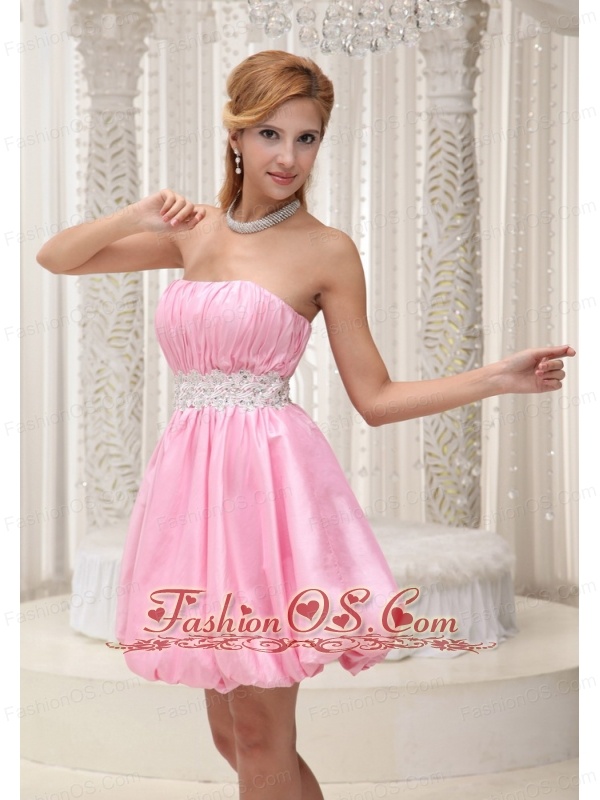 Home >  Special Occasion Dresses >  Homecoming Dresses > Ruched Bodice Sash With Beading Lovely Homecoming / Cocktail Dress For Formal Evening Pink Taffeta and Mini-length