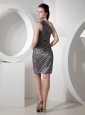 Ruched Decorate Bodice One Shoulder Knee-length Grey Column 2013 Prom / Cocktail Dress