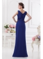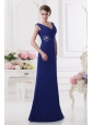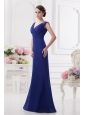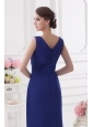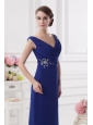 Home >  Prom Dresses >  Cheap Prom Dresses > Ruching and Beading V-neck Column Dark Blue Prom Dress