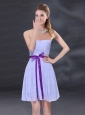 Ruching and Belt Chiffon Prom Dress in Lavender
