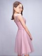Ruching and Bowknot Quinceanera Court Dresses Pink Lace Up Sleeveless Mini Length