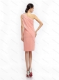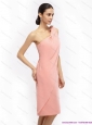 Ruching and Hand Made Flowers 2015 Pink  Prom Dresses with One Shoulder
