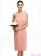 Ruching and Hand Made Flowers 2015 Pink Prom Dresses with One Shoulder