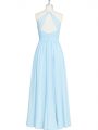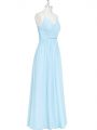 Ruching and Pleated Prom Dresses Light Blue Zipper Sleeveless Floor Length