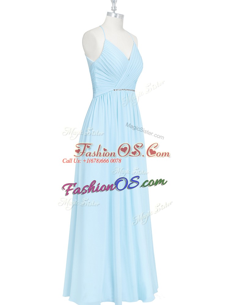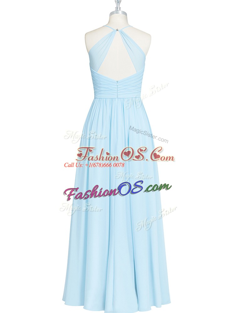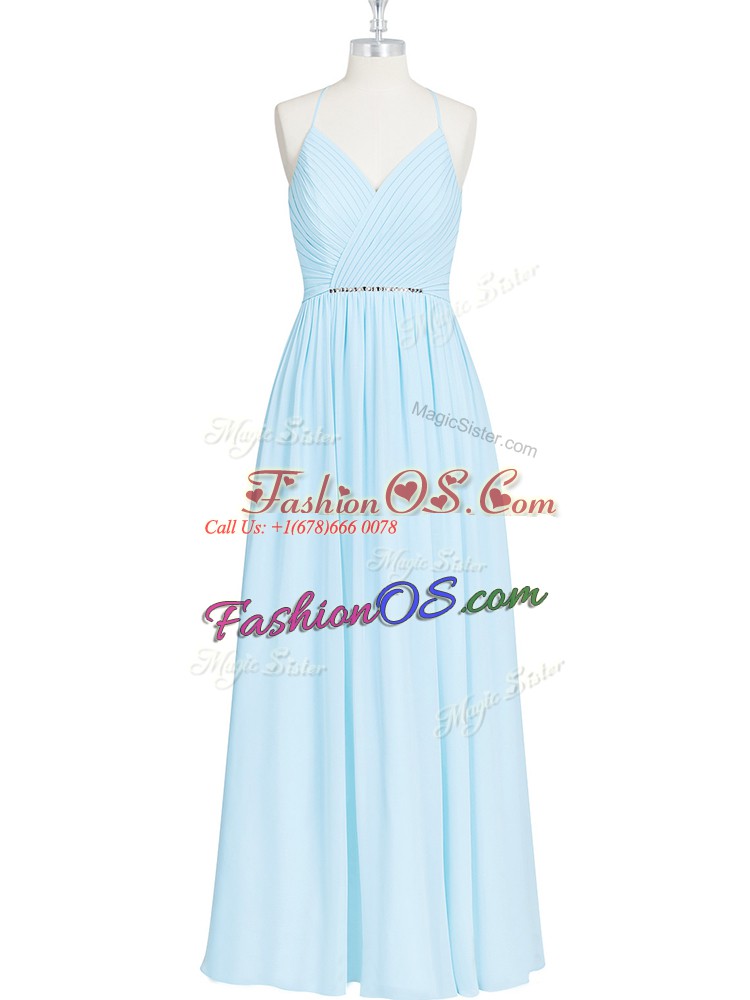 Home >  Prom Dresses >  Gorgeous Prom Dresses > Ruching and Pleated Prom Dresses Light Blue Zipper Sleeveless Floor Length