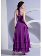 Ruching Decorate Up Bodice Purple Chiffon Ankle-length Halter 2013 Prom Dress