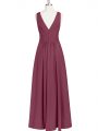 Ruching Dress for Prom Burgundy Zipper Sleeveless Floor Length