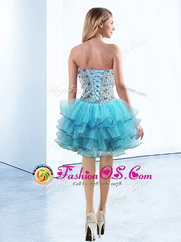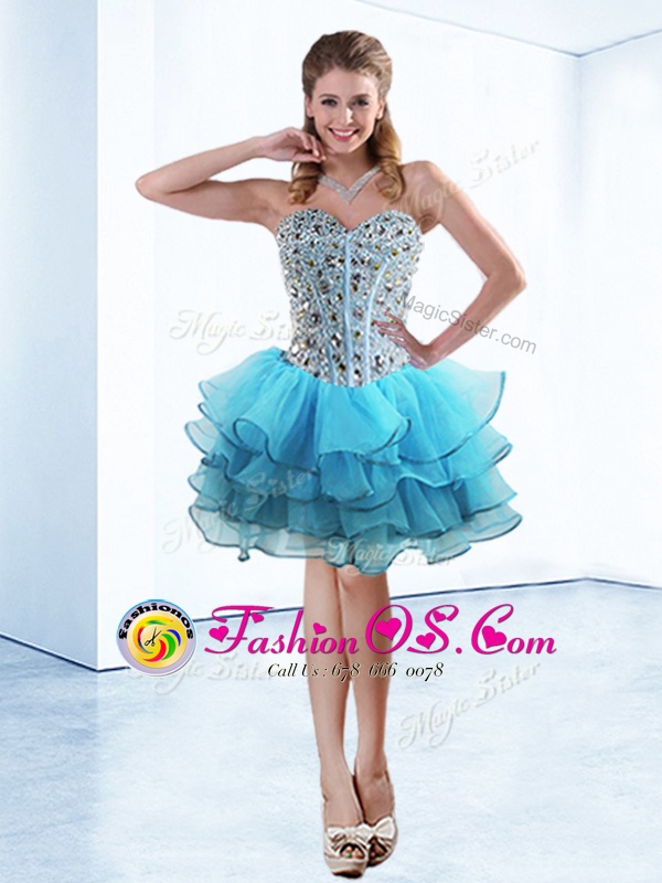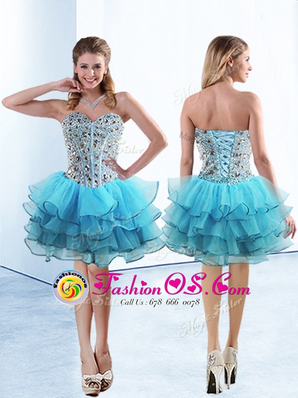 Home >  Prom Dresses >  Perfect Prom Dresses > Ruffled Knee Length A-line Sleeveless Baby Blue Evening Dress Lace Up