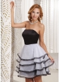 Home >  Prom Dresses >  Modest Prom Dresses > Ruffled Layers A-line Customize Cocktail Dress With Black and White For Summer