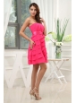 Ruffled Layers Strapless Mini-length Coral Red Chiffon Sash 2013 Prom Dress