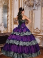 Ruffled Layers Taffeta and Zebra Sweetheart Quinceanera Dress in Purple