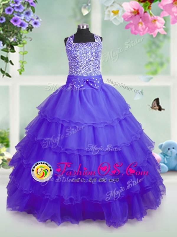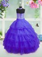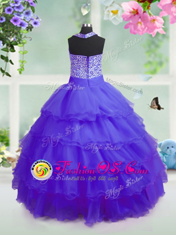 Ruffled Purple Sleeveless Organza Zipper Girls Pageant Dresses for Party and Wedding Party