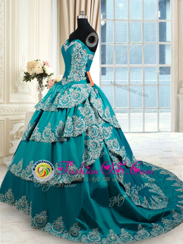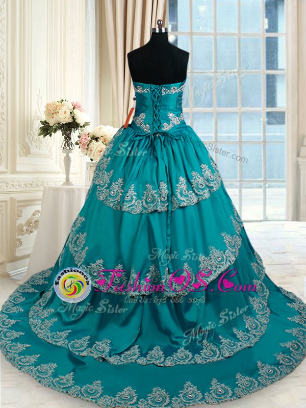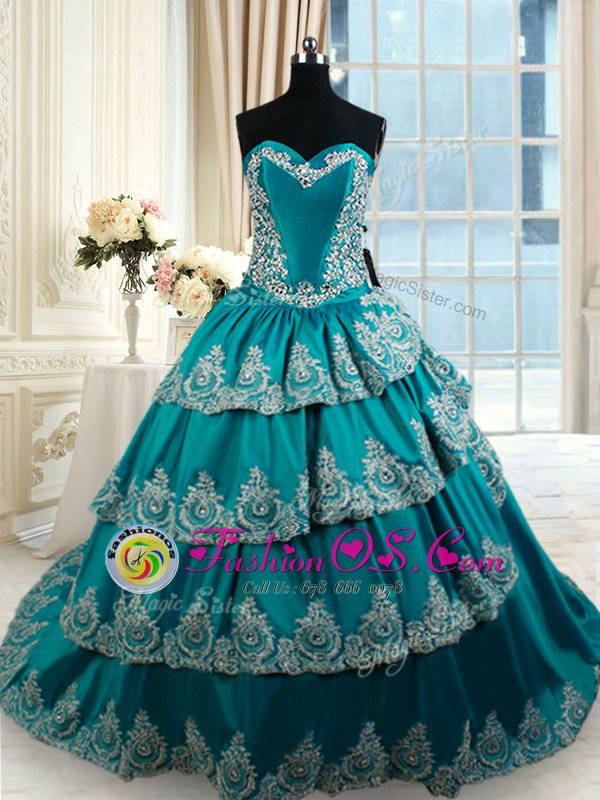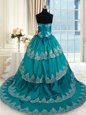 Ruffled Teal Sleeveless Taffeta Lace Up Sweet 16 Dress for Military Ball and Sweet 16 and Quinceanera