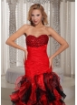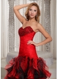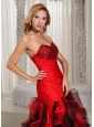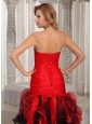 Ruffles A-line Swetheart Ruched Bodice Prom Dress Red and Black With Beading Decorate