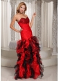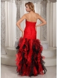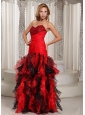 Home >  Prom Dresses >  Best Prom Dresses > Ruffles A-line Swetheart Ruched Bodice Prom Dress Red and Black With Beading Decorate