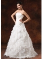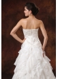 Be the belle of the wedding in this fabulous wedding gown! The strapless bodice features a straight neckline and whole bodice is adorned with nice embroidery and little hand made flowers that greatly adds your feminine figure. The tiered floor length skirt is accented with the exquisite lace ruffles which create a gorgeous look till the hem. A zipper up back completes the stunning design.