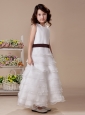 Ruffles High Neck Flower Girl Dress Ankle-length White A-Line Wedding Party Customize