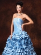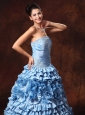 Ruffles Light Blue Strapless A-line Appliques Taffeta Chic New Arrival Prom Gowns In Bessemer Alabama