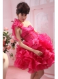 Home >  Prom Dresses >  Popular Prom Dresses > Ruffles One Shoulder A-Line / Princess Organza Mini-length Prom Dress Red