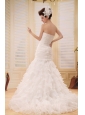 Ruffles Strapless Hand Made Flowers Organza Stylish Custom Made Wedding Dress For 2013